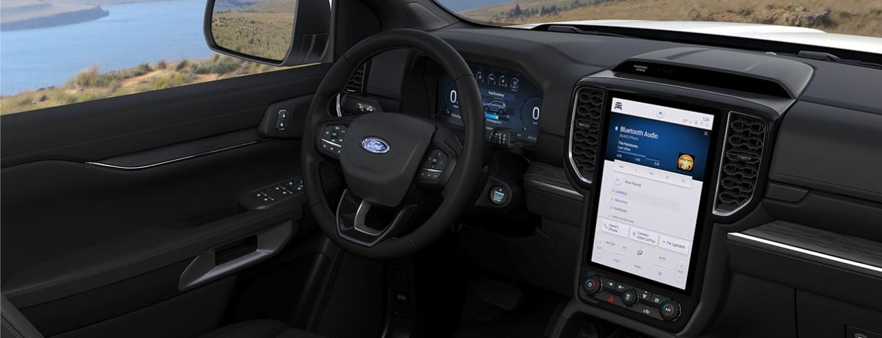 Chính giữa táp-lô là màn hình trung tâm 10,1 hoặc 12 inch, tùy cấu hình, thiết kế đặt dọc, đi kèm hệ thống giải trí SYNC 4A mới nhất.
