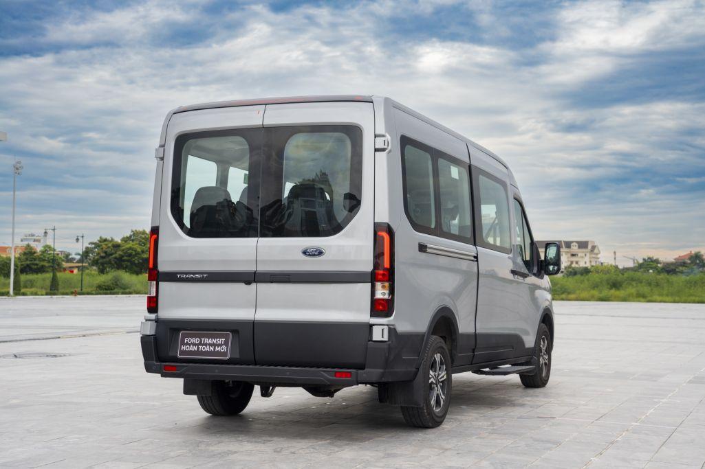 Tiến về khu vực phía sau, model 2024 của Transit thiết kế kéo dài, giúp tổng thể xe thêm phần hài hòa và hiện đại. Cặp đèn hậu làm lại với đồ họa chiếu sáng mới, tăng thêm tính thẩm mỹ cho xe. Bản cao cấp cũng có điểm nhận diện khác biệt so với 2 bản còn lại ở bộ la-zăng dạng vành sắt.