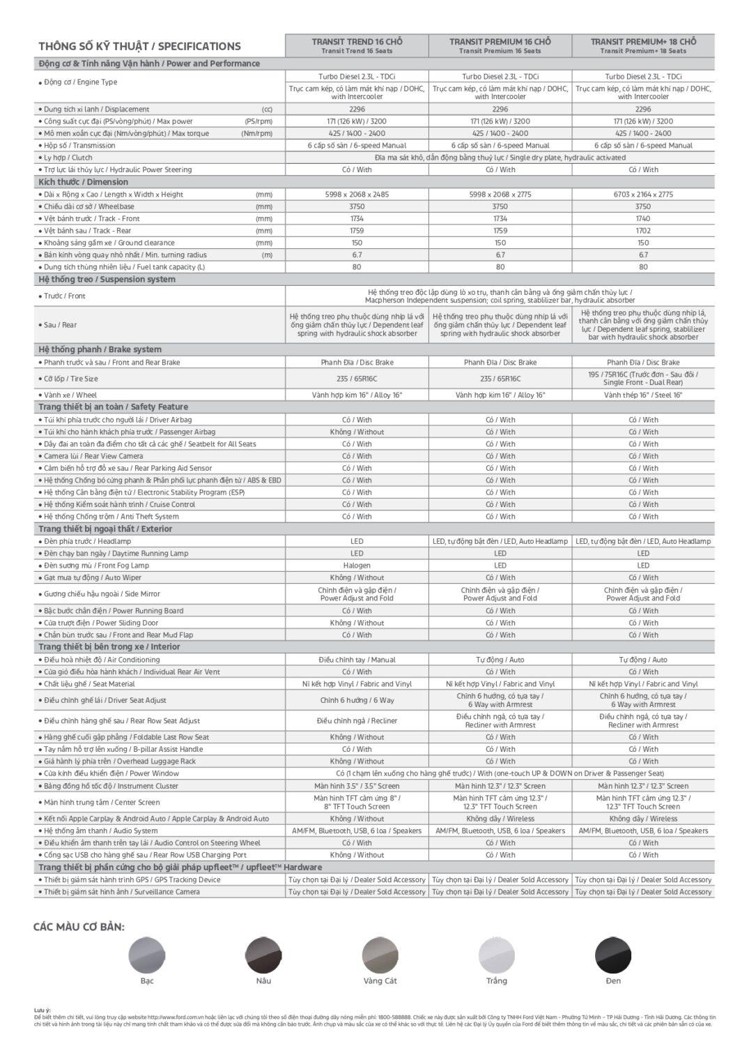 Thông số Ford Transit