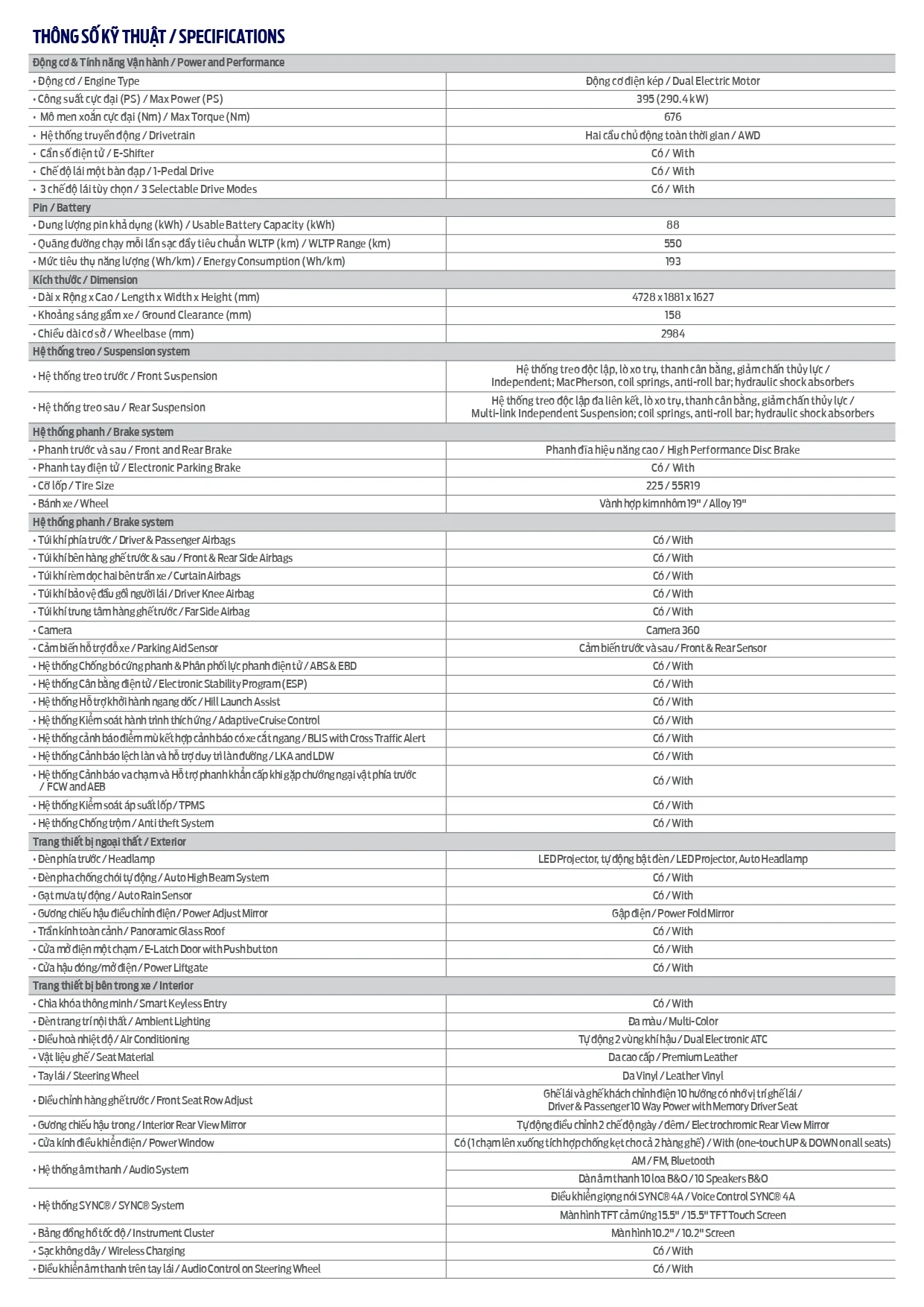 | Mustang Mach-E Premium AWD: | 2.599.000.000 ₫ đ |